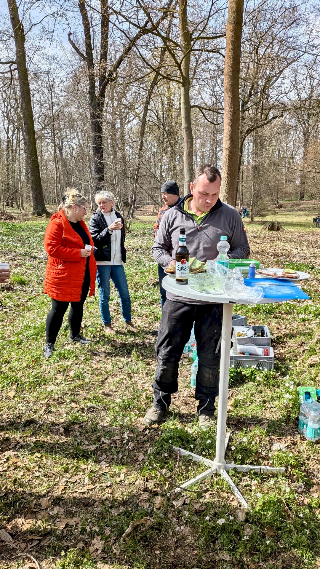 Nach getaner Arbeit wartete eine wohlverdiente Stärkung: frisches Brot, hausgemachte Bärlauchbutter und ein oder zwei erfrischende Getränke sorgten für gute Laune und rundeten den Einsatz perfekt ab.