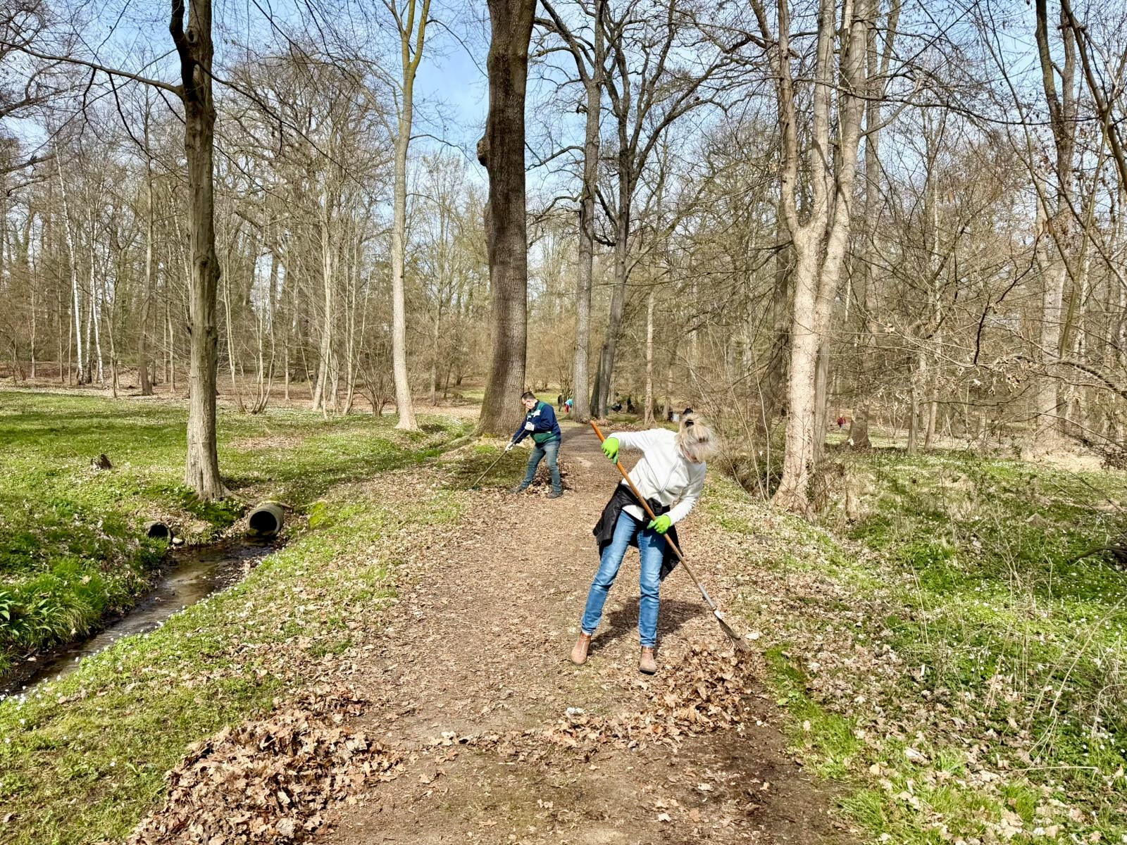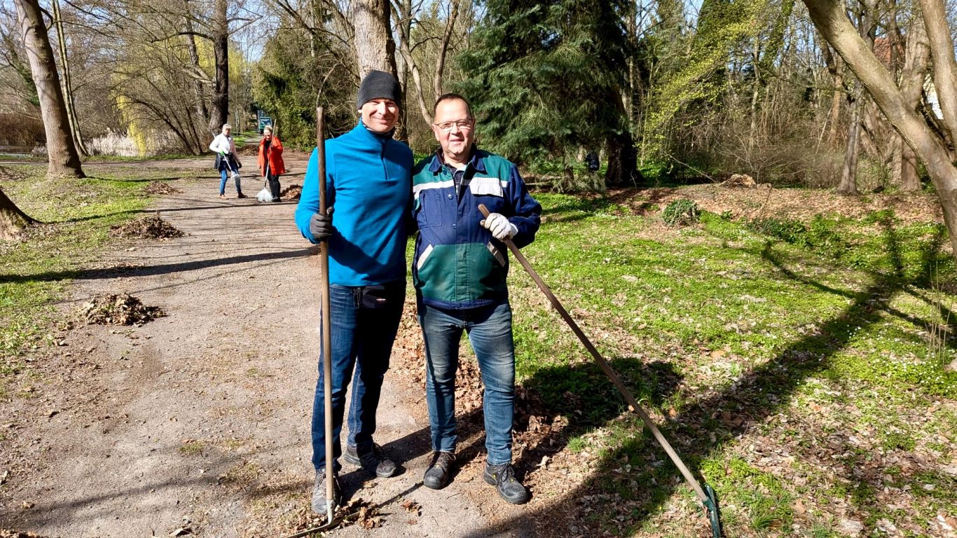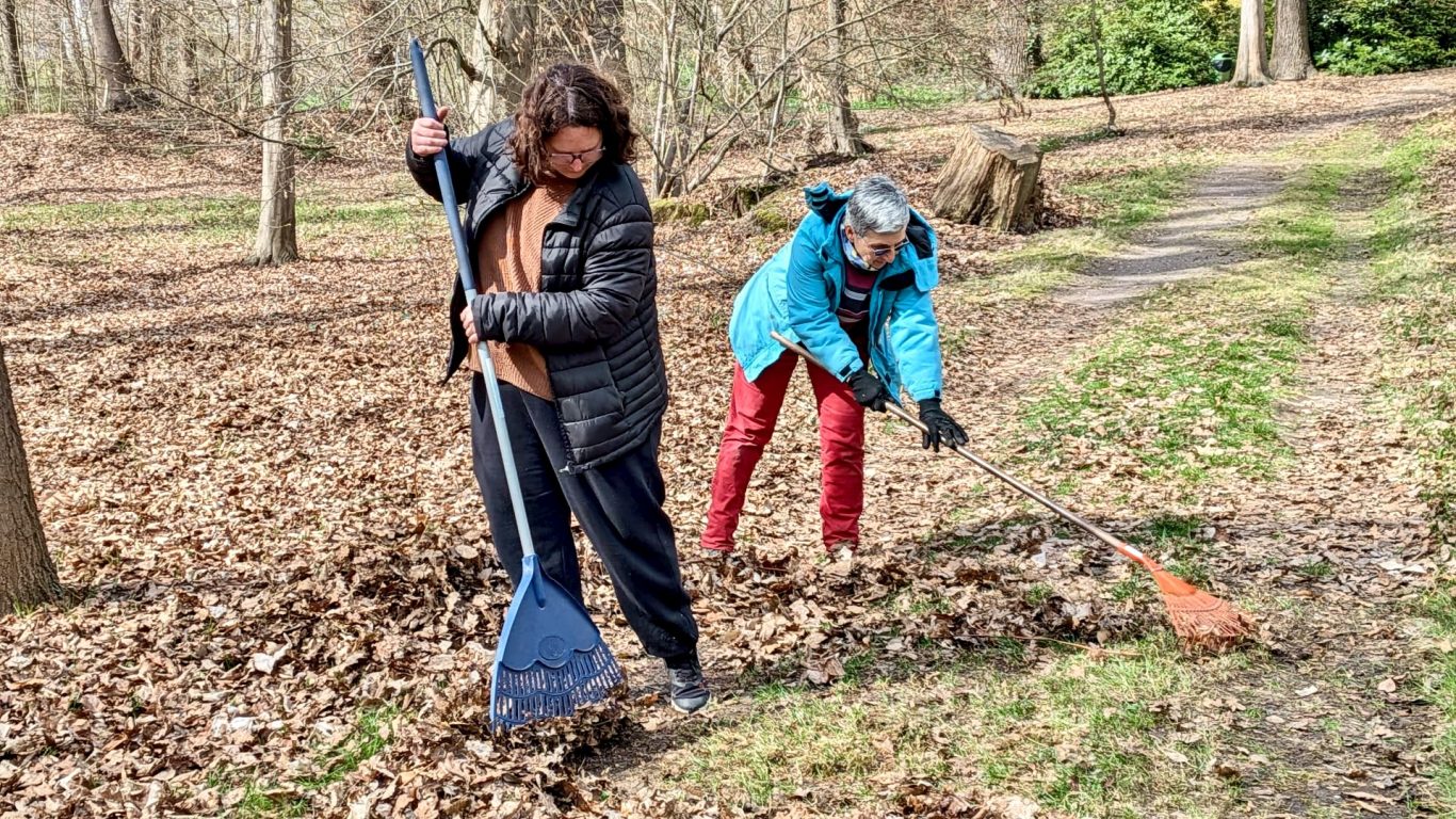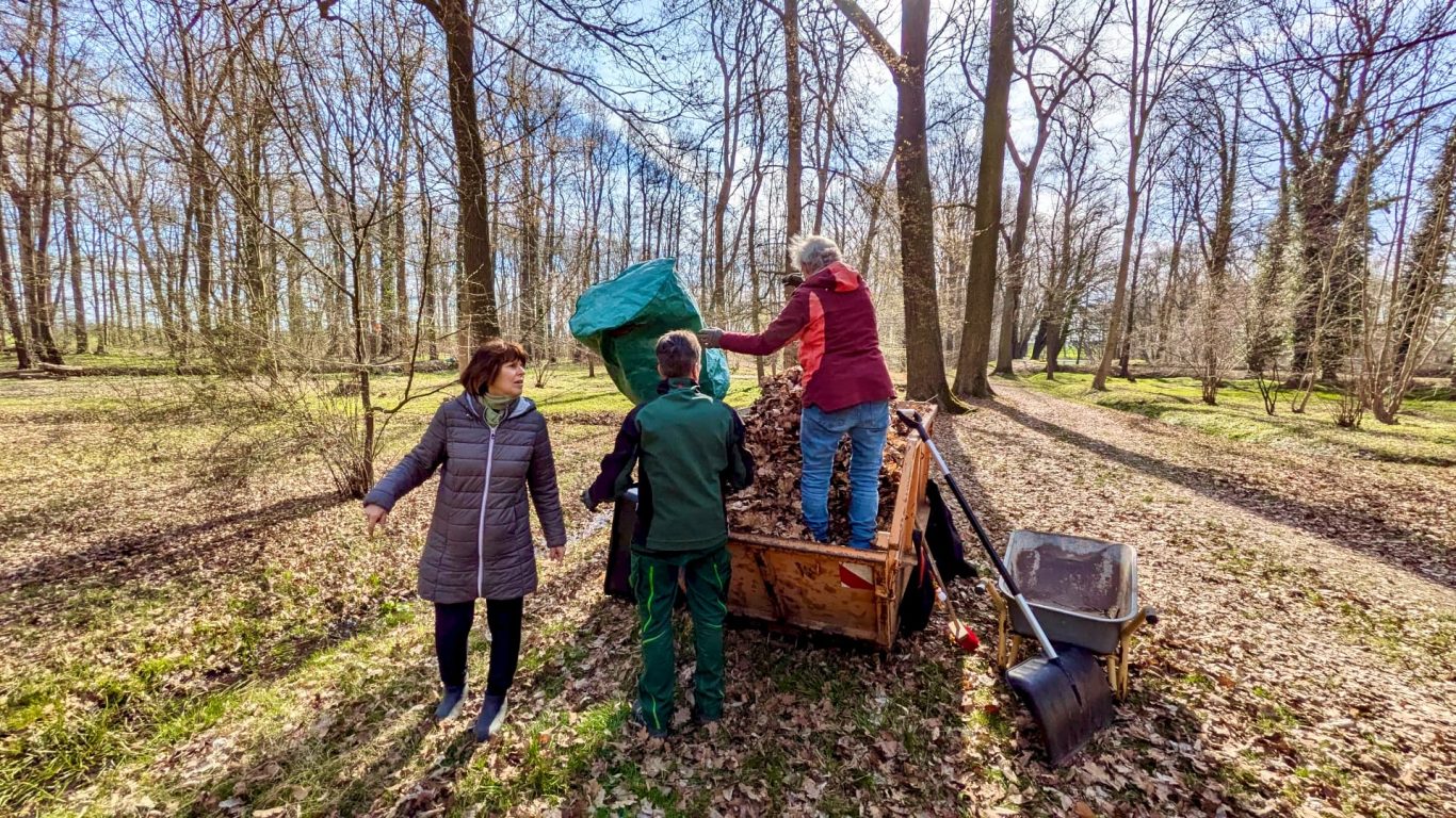 Mit Rechen, Besen und Schubkarren wurde Laub gesammelt, Unrat entfernt und der Park wieder in einen einladenden Zustand versetzt.
