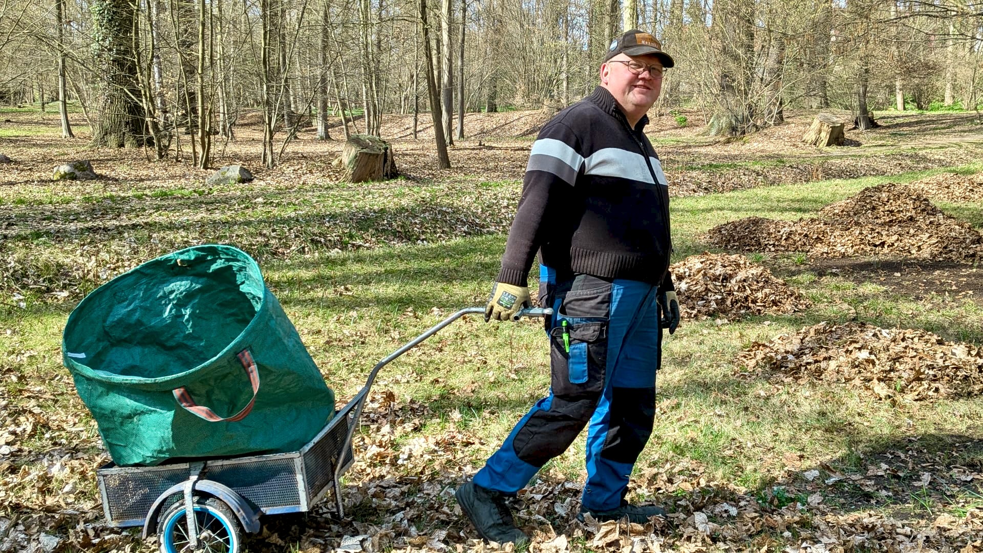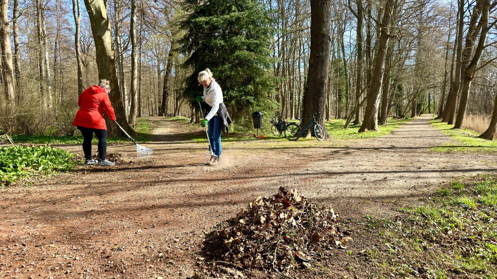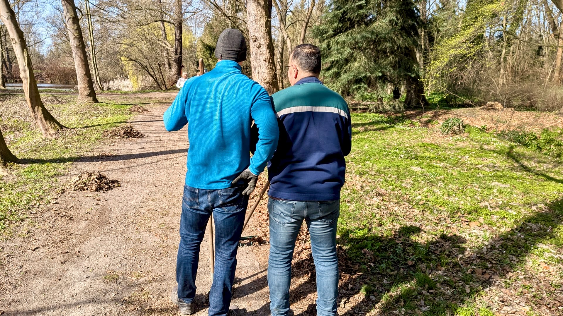 Mit Rechen, Besen und Schubkarren wurde Laub gesammelt, Unrat entfernt und der Park wieder in einen einladenden Zustand versetzt.
